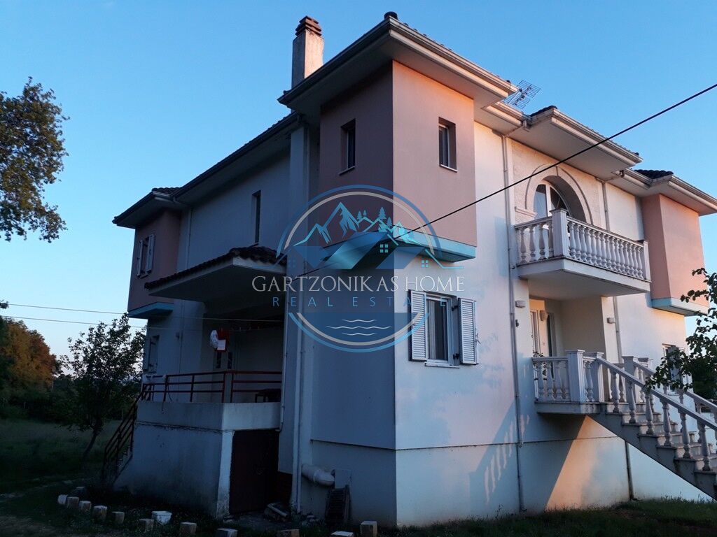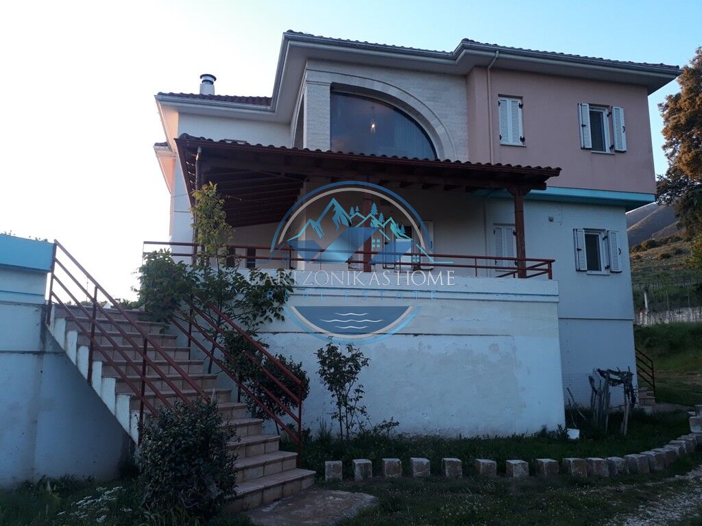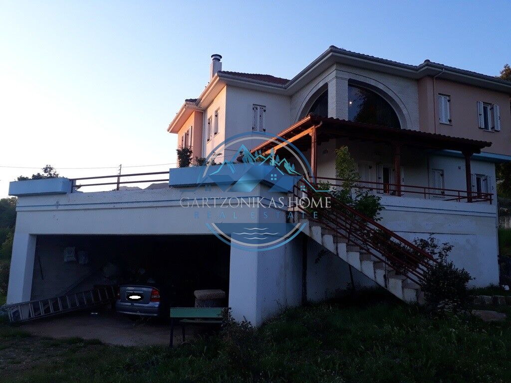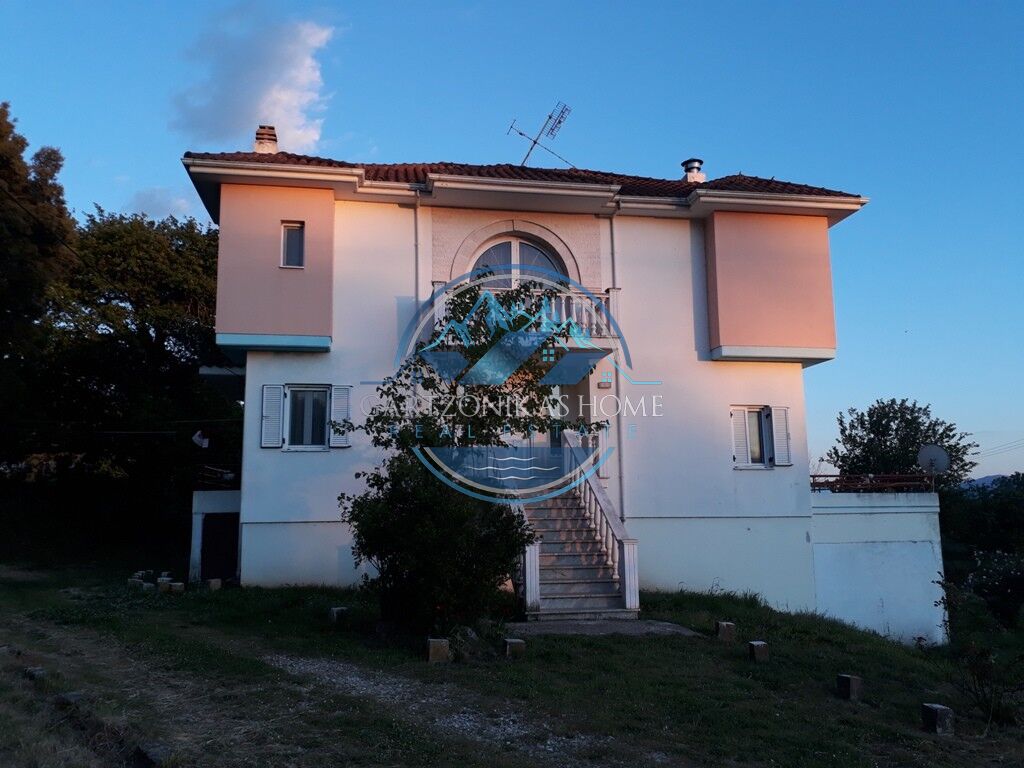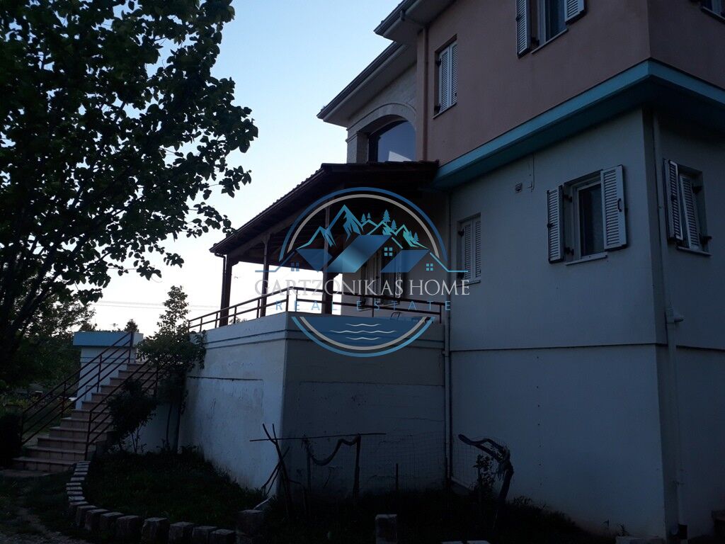 Available for sale. A two storey house, of 280 square meters in total, inside a 5200 sq.m. private plot, with a tall concrete wall at its borders, situated at the suburban area of “Amfithea”, only 5 klm away from the city of Ioannina. The ground floor of 60 sq.m. in total can be use as a parking garage or a storage room. The first floor, of 140 sq.m. in total has 4 rooms, a living room with a fire place, a quest room, a large kitchen and a large bathoorm. The second floor of 80 sq.m. in total, which is accesible via an internal staircase, has 3 large bedrooms and a large bathoorm.