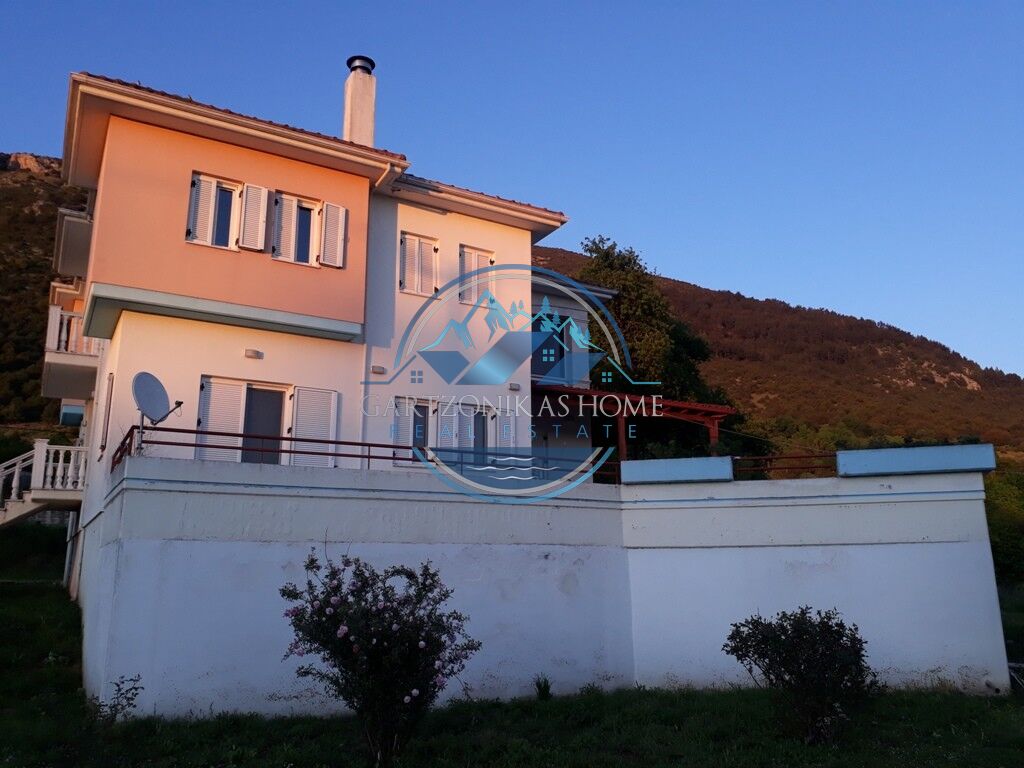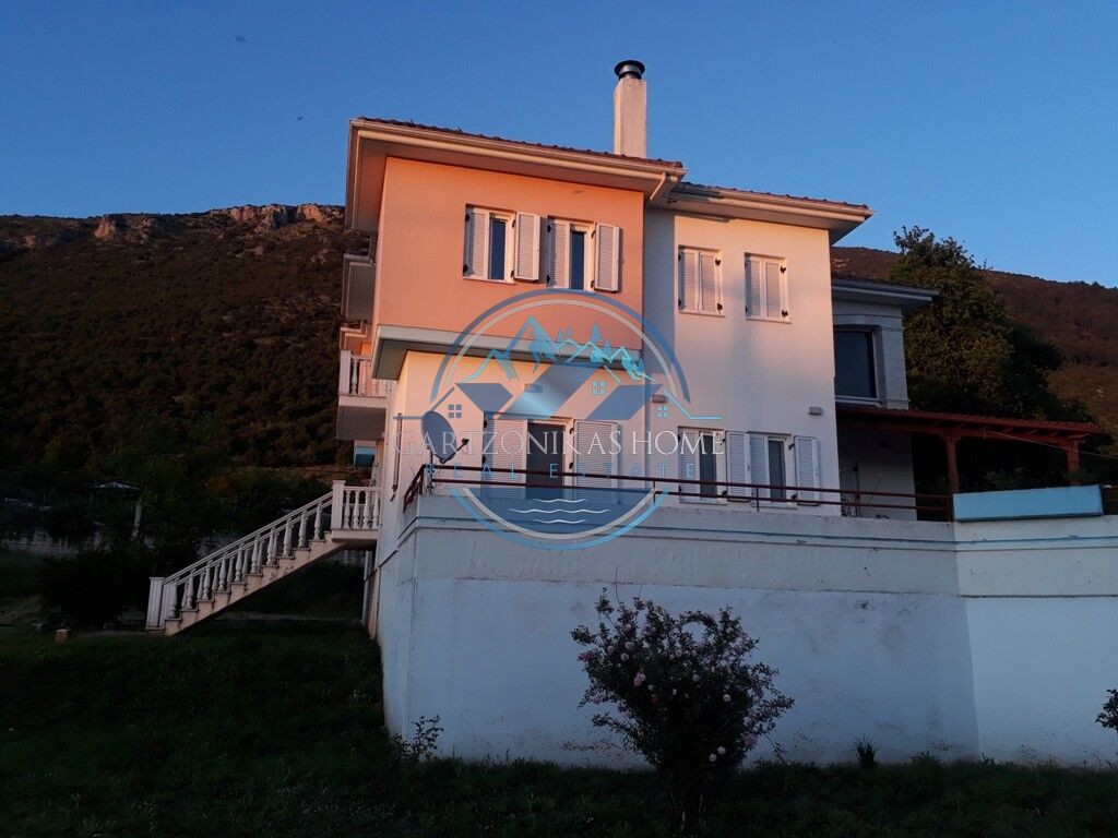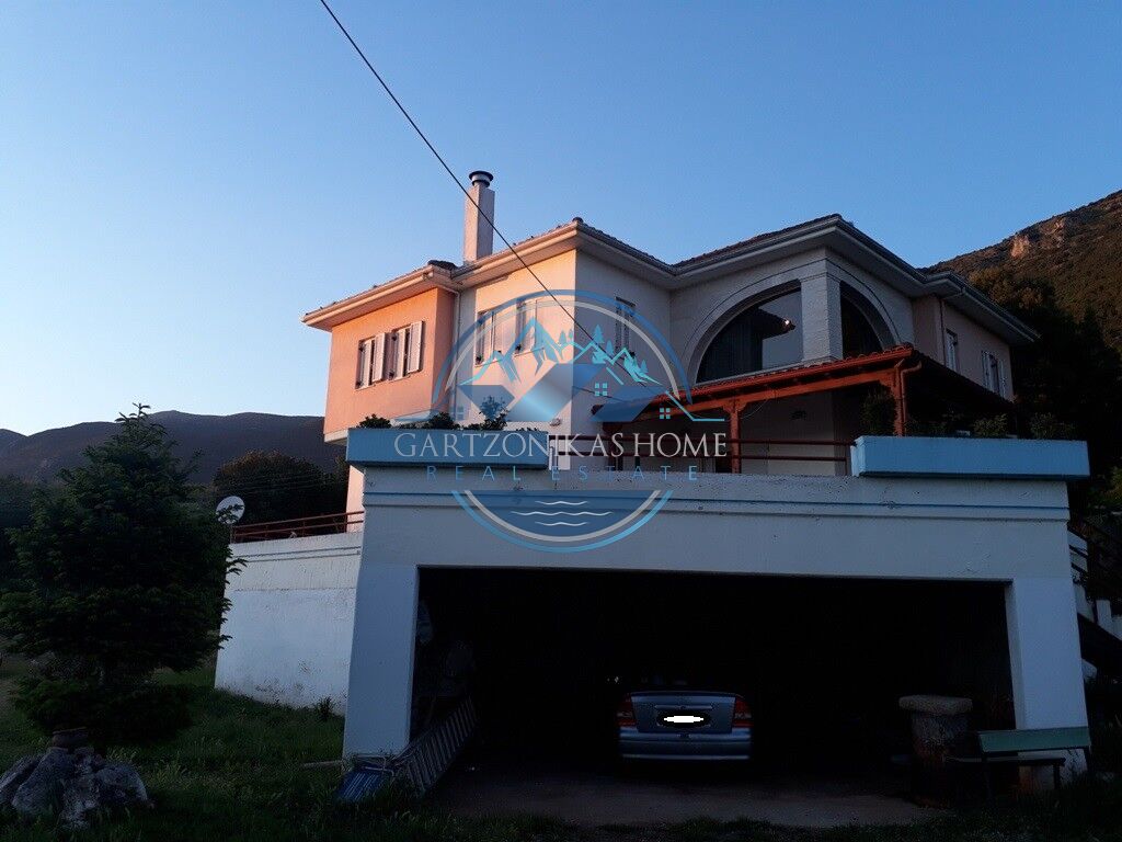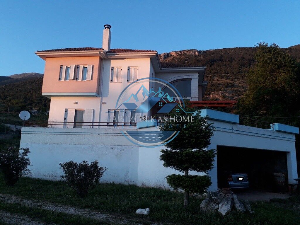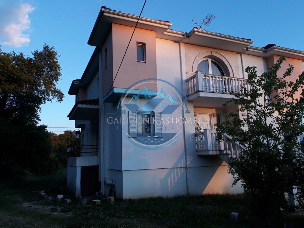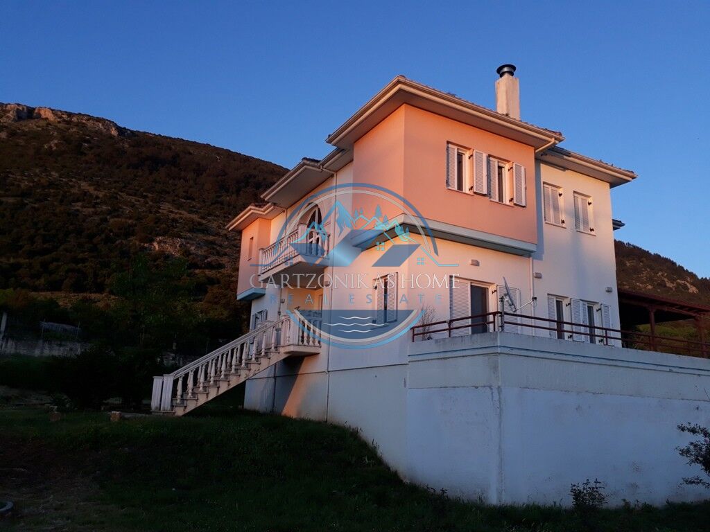 Available for sale. A two storey house, of 280 square meters in total, inside a 5200 sq.m. private plot, with a tall concrete wall at its borders, situated at the suburban area of “Amfithea”, only 5 klm away from the city of Ioannina. The ground floor of 60 sq.m. in total can be use as a parking garage or a storage room. The first floor, of 140 sq.m. in total has 4 rooms, a living room with a fire place, a quest room, a large kitchen and a large bathoorm. The second floor of 80 sq.m. in total, which is accesible via an internal staircase, has 3 large bedrooms and a large bathoorm.